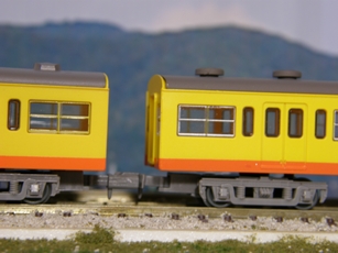 それでその2両を眺めていたところ、クモハとクハで窓枠の色が違うのを発見しました。クモハが車体色の黄色、クハが銀色です。これはこういう仕様なのですか?だれか教えてください。