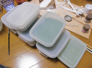 今回は石膏の部分を覆い隠しますので、水ではほとんど溶かずに塗りました。