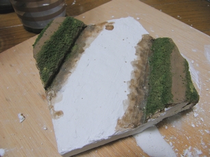 しかーし相変わらず中央部分は最初の石膏のままで真っ白ですので、ここには川の流れを表現していきます。