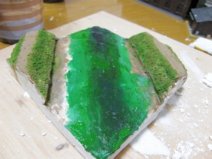 サンドパウダーをタミヤカラーに添加して、築堤上の未舗装の道を再現します。